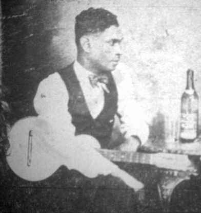 “Soy Arturo Catalá, hombre recto y comedido, doy mi vida por un güiro al son de mariandá”. Arturo Catalá Torre en “Los Jardineros Bombeando” (OKeh 14019). Foto de la colección de Olga Catalá Reyes, San Juan, P.R. |