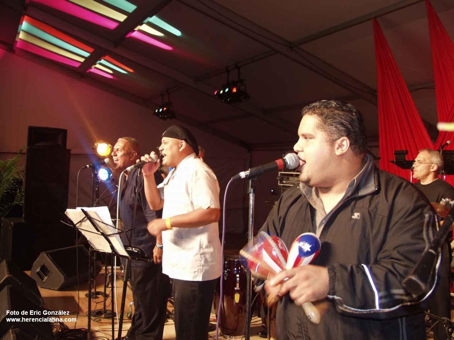 Roosevelt Cordova (vocals) and Johnny Polanco (leader, trombone) and Papo Rodriguez (timbales)